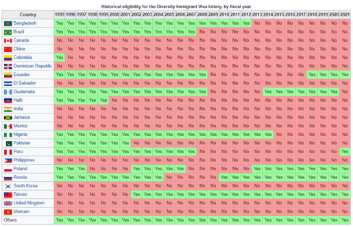 DV Lottery eligible countries' changing status